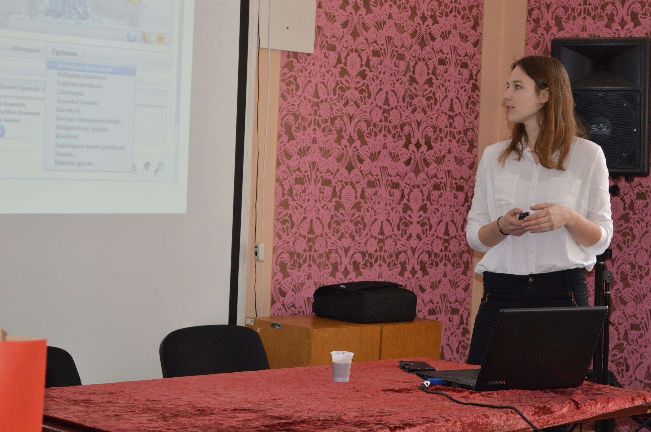 A délelőtti  Hogyan él az egyetemista? című előadáson a magyarországi felsőoktatási intézményekbe jelentkezett diákok a rendszer sajátosságairól, ösztöndíjlehetőségekről, adminisztrációs teendőkről hallhattak Reéb Zsófiától, a MÁSZ természettudományi kabinetjének tagjától.