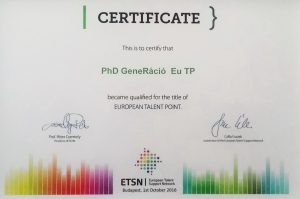 2016-ban pedig felkerültünk az európai tehetséggondozás térképére is, ugyanis sikerrel regisztráltuk a PhD GeneRational Eu TP (PhD GeneRáció Eu TP) Európai Tehetségpontunkat az Európai Tehetségsegítő Hálózatba.Az erről szóló oklevelet 2016. október 1-én vehettük át Budapesten a Tehetségpontok Találkozóján.